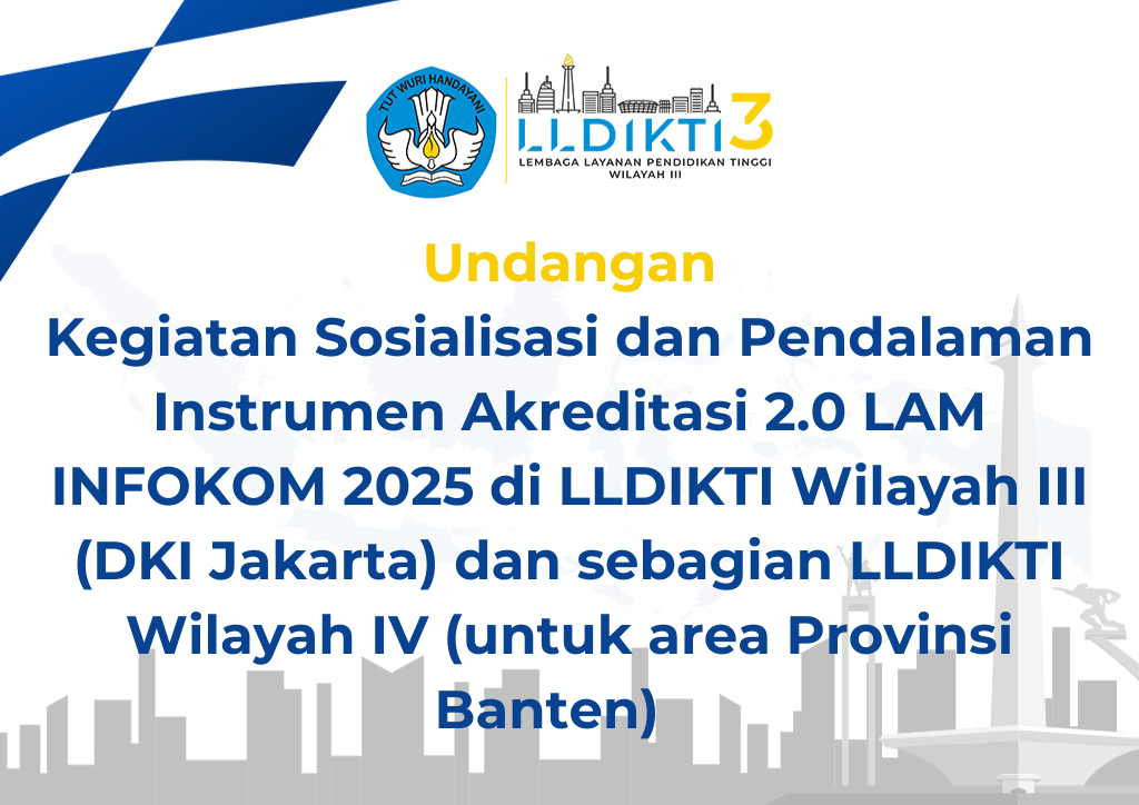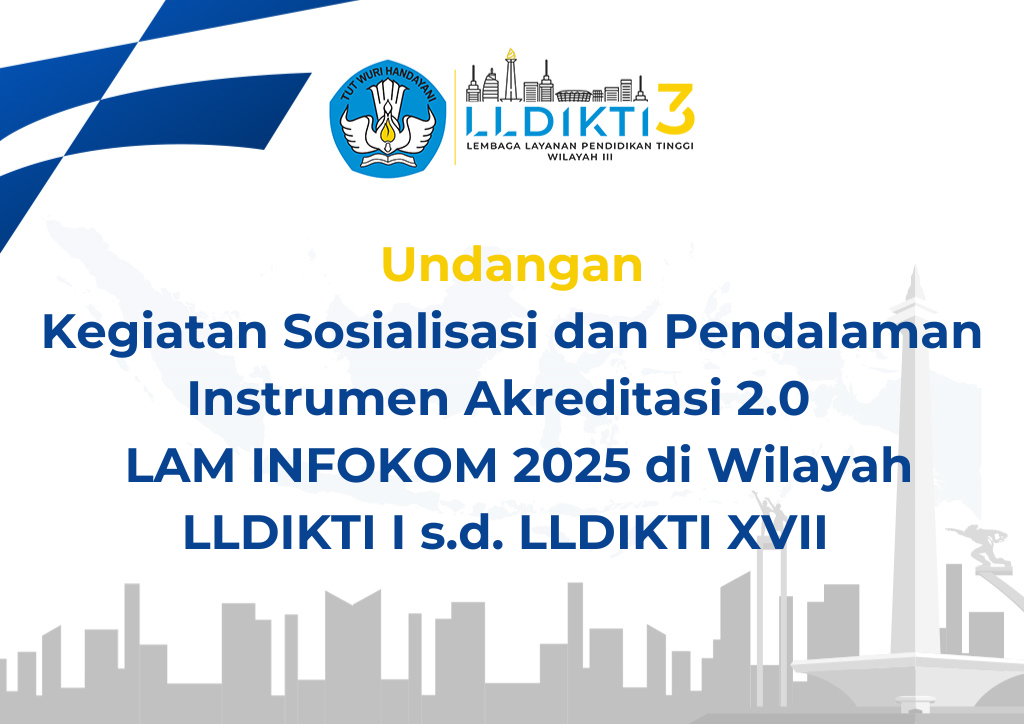 Lembaga Akreditasi Mandiri Informatika dan Komputer (LAM INFOKOM) akan menyelenggarakan kegiatan Sosialisasi dan Pendalaman Instrumen Akreditasi 2.0 LAM INFOKOM 202