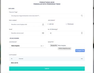 - Jika perguruan tinggi atau instansi mengajukan lebih dari satu akun dan disetujui maka akun master terbaru akan menggantikan akun master yang sudah ada.